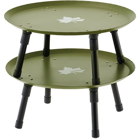 ロゴスのロングセラーテーブルに新型が登場.円形で角がない柔らかな印象と使用人数を問わない昔ながらのちゃぶ台.スタックも OK .物が転がり落ちにくいトレー型天板.ちゃぶ台をイメージしたレトロな雰囲気のミニテーブル.天板は丈夫なスチール製で、トレー型にデザインすることで小物が転がり落ちにくい構造です.円形テーブルは座る位置が自由なので、使用人数を選ばずにテーブルを囲むことができます.スタックも可能で、レイアウトと拡張を自在に楽しむことができるのもポイント.ご自宅のソファの横に置けばサイドテーブルとしても活用できる便利なサイズ感です. 重ねてミニラックに! | スタックできるのでお好みのレイアウト&拡張が可能で、ミニラックとし・
