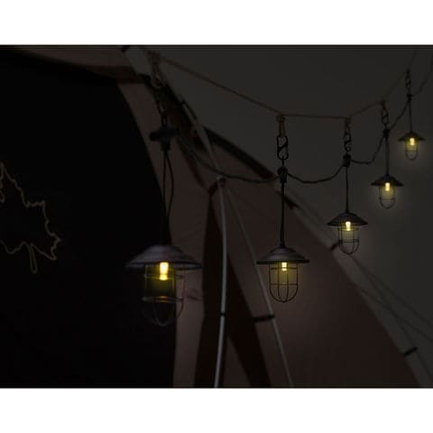 キャンプサイトをデコレーション.レトロな雰囲気のどんぐり型5連ランプ.どんぐりがコロコロ転がるような5連式デコレーションライト.テントやキャンプサイトを彩ります.カラビナ付きで、様々な場所にスムーズに吊り下げられます.手軽に使える電池式.電池ボックスは小さく、テント内ポケットに収納が可能です.一定の時間で点灯(6時間)と消灯(18時間)を繰り返す便利なタイマーモード付き.例えば夜の18時にタイマーモードで点灯した場合、6時間後の24時に自動消灯し、翌日の18時に再度自動点灯します.暗くなる前にタイマーをセットしておくと、暗い中でスイッチを探す手間が省け、消し忘れる心配もなく便利です.(※点灯時間はあくまで目安です.)