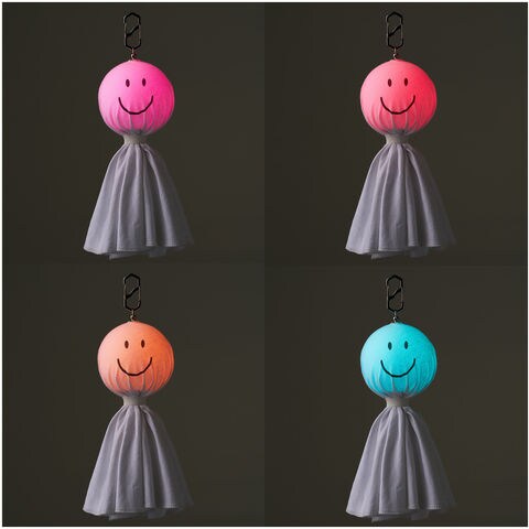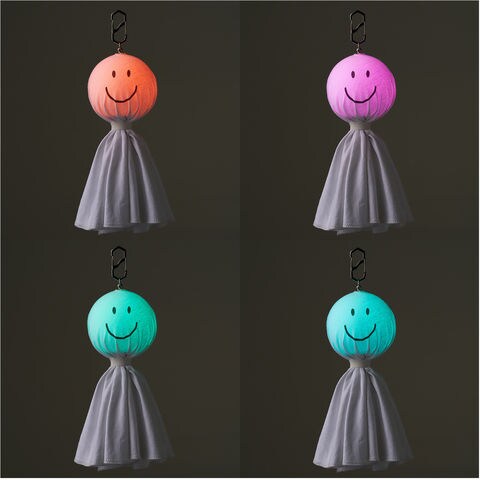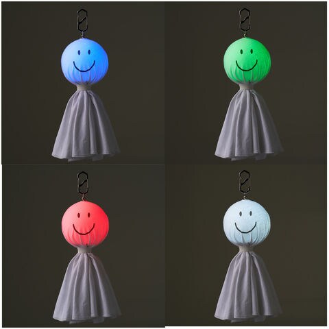 光るてるてる坊主!ライトに生地を被せてリングで絞るだけの簡単構造.自分で顔を描ける[お絵描き生地]もセットしています.点灯色は16色切り替え可能.点灯色が自動で移り変わる色変モードも搭載.点灯色がシームレスに移り変わるグラデーションモード搭載.