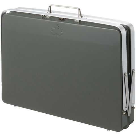 スマートに持ち運べるアタッシュケース型大型グリル.アタッシュケースを開くとグリルになる、スタイリッシュなデザインの大型グリル.ケースに焼網や火床が収納されているので、開いてセットするだけで簡単にバーベキューを楽しめます.ケースは持ち手とロックがついているので、電車や徒歩での移動もラクラク.