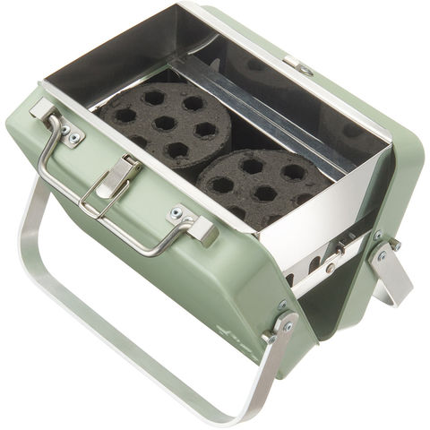 アタッシュケースを開くとグリルになる、スタイリッシュなデザインの卓上ミニグリル.ケースに焼網や火床が収納されているので、開いてセットするだけで簡単にBBQを楽しめる.ケースは持ち手とロックがついているので、電車や徒歩での移動もラクラク.ミニサイズなのでカバンにも入りやすく、バイクや自転車での持ち運びにも.焼網が約16.5×11.4cmのミニサイズ.お一人様BBQはもちろん、ちょこっとお肉を焼いたり、おつまみを炙ったりするのに最適.火床は、別売りの[エコココロゴス・ミニラウンドストーブ]2個がぴったり収まるサイズ.ライターで簡単に着火するので、めんどうな火おこしがなく、すぐにBBQをスタートできます.