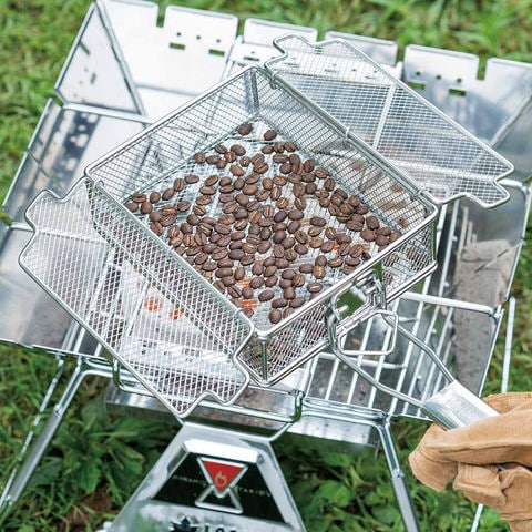 本格的な炭火もも焼きができるユニークな調理アイテム!アウトドアで気軽におつまみを作れて、みんなで楽しむことができます.ポップコーンやコーヒー豆、銀杏を煎るなど、アイデア次第で使い方はさまざま.ハンドルは折りたたみ式なので収納はコンパクトに.