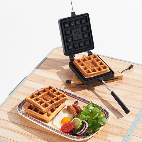 アウトドアで簡単にふわふわなワッフルが焼けるアイテム.チョコやメイプルシロップ、抹茶などお好みの材料を使って作ることができる.LOGOSオリジナルのメイプルリーフの焼印がアクセントに.ハンドルが取り外せるので、持ち運び楽々で収納もコンパクト.アウトドアでもデザートを楽しもう!お手軽ワッフルパンです.