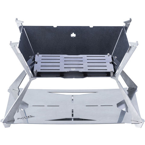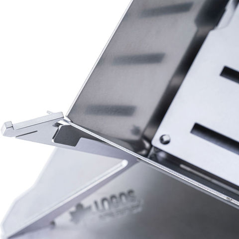 一生ものクラスの耐久性を実現した、新型たき火台.人気のピラミッドTAKIBIシリーズからハイグレードなモデルが登場.従来アイテムの約3倍も厚いステンレスを採用し、組立て方法も一新することで、親から子へ受け継いで使えるほど高い耐久性を実現.ピラミッドTAKIBI用の焼網やゴトクをオプションでお使いいただけ、調理の幅が広がります.国内での生産にこだわっているのもポイント.耐久性を追求したピラミッドTAKIBIの決定版です.スリッドに差し込めば完成のスマート構造で、収納時はコンパクトに.お手入れもしやすい.日本の、精度の高いレーザーカット技術を採用.厚みのあるステンレスパーツにも、細かいデザインを施しました.