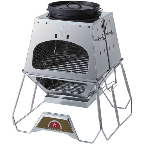 本格ピザが楽しめる組立簡単KAMADO.内部温度は最大400℃以上が可能だから本格的な調理ができます.更にオーブン料理と同時に鍋料理も楽しめるKAMADOならではの構造.カレーとナン、シチューとピザ など、1台で幾つもの料理が楽しめる究極のアウトドアクッキングアイテム.驚きの顔”Wa!”と笑顔の”Emi”のフェイスが施されたデザイン.無煙!チャコラックのセットが可能.