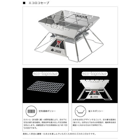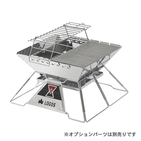 機能:元祖ピラミッドスタイル、薪を立てる新発想!たき火ゴトク、ダッチやケトルも直接OK、魚の串焼きも楽しめる!串焼きプレート、オプションパーツも豊富に用意
