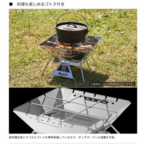 ロゴス LOGOS LOGOS the ピラミッドTAKIBI XL 焚き火 たき火 ゴトク料理 焚き火台 串焼きプレート付き 灰受け構造 コンパクト収納 キャンプ バーベキュー 81064161