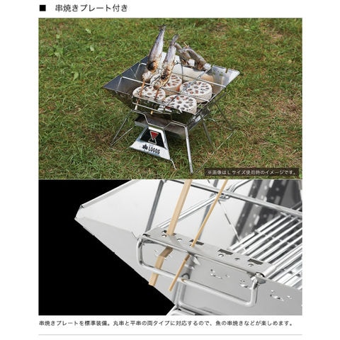 構成:本体、たき火ゴトク(串焼きプレート付)、ワイヤーロストル、収納バッグ