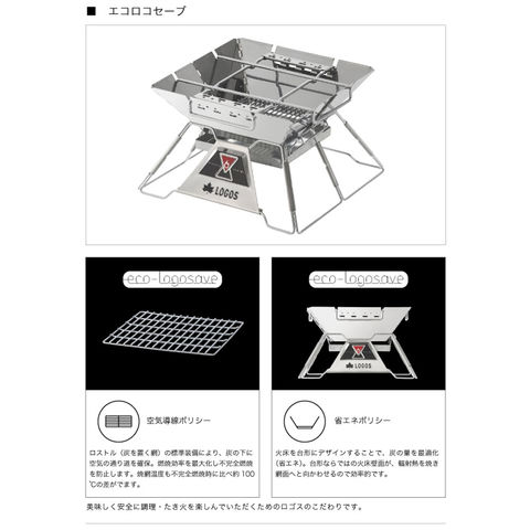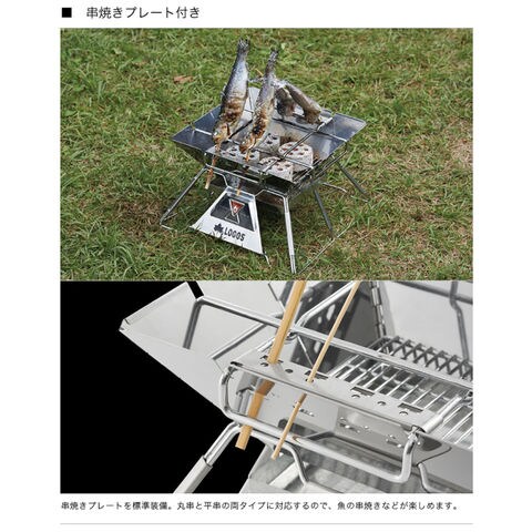 仕様:構成/本体、焚火ゴトク(串焼きプレート付)、ワイヤーロストル、収納バッグ