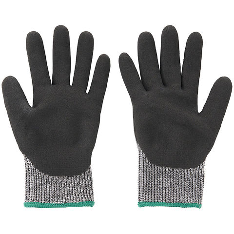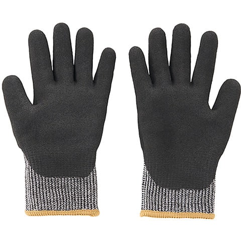 刃物で切れにくい生地 / 企業が工場などで使用する基準をクリアした最高水準の[耐切創レベル 5C(EN388:2016) ].高強度ポリエチレンとガラス繊維を編み込むことで、切断しずらい高い耐切創レベルを実現.刃物などから、作業中の手や指を守ります.