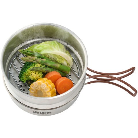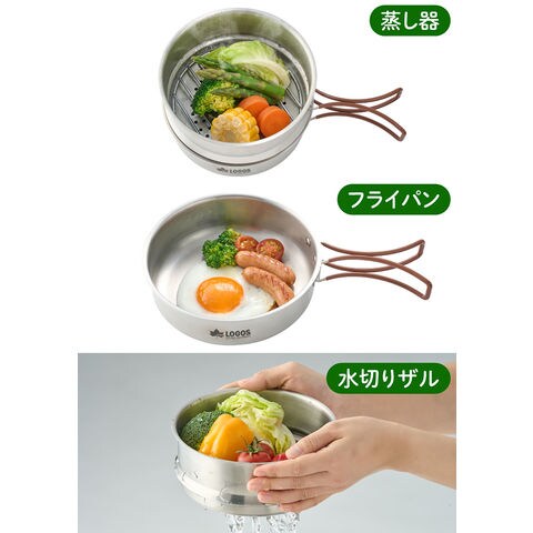ロゴス LOGOS LOGOS アウトドア蒸し器 シルバー フライパン キャンプ ソロキャンプ ステンレス スチール 時短 蒸し料理 食材網 コンパクト 鍋 釣り BBQ 81210210