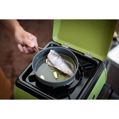 ケトル・蓋はクッカーにぴったりのサイズ / 鍋とフライパンは持ち手をたたんでコンパクトに.ケトルは鍋の中にぴったり収まり、すべてスタッキングして収納が可能です.保管の際に場所を取らず、持ち運びにも便利です.※ポット内にケトルを収納する際は、ケトルの蓋を裏返してから収納してください.