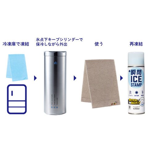 濡れタオルにプッシュ! 氷のスタンプで瞬間的に氷結タオルを作ります.タオルの水分を凍らせるので違和感なく優しくソフトに使えます.携行性に優れたポケットサイズで、持ち運びも楽ちんです.