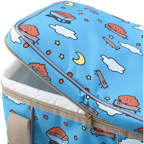 10mm厚の断熱材で冷たさキープ!たためる抗菌クーラー.ロゴスのえほんに登場するキャラクターをモチーフにしたワクワク感が溢れるLOGOSオリジナル総柄デザイン.
