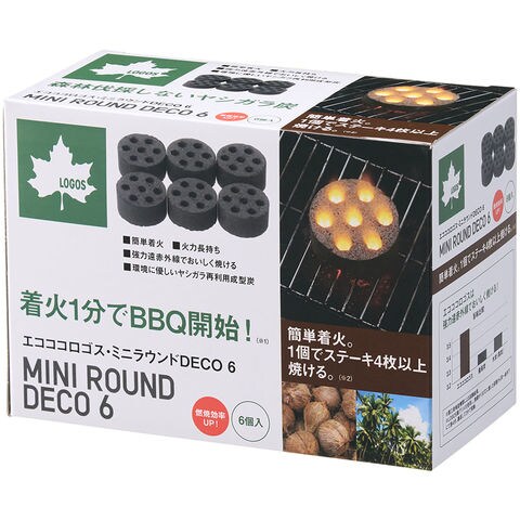 ロゴス LOGOS エコココロゴス・ミニラウンド DECO 6 ヤシガラ成型炭 着火剤加工 簡単着火 火おこし不要 BBQ バーベキュー 高火力 長時間持続 30~45分燃焼 83100116