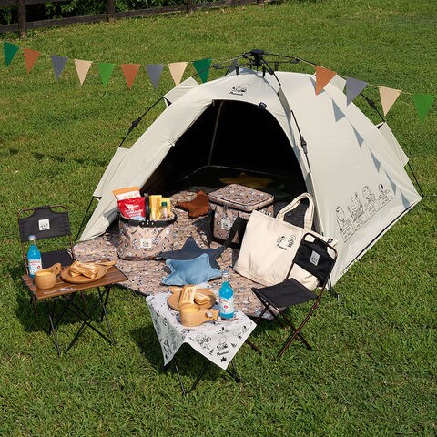 軽量で持ち運びにも便利なコンパクトテーブル.ピクニックやキャンプのサイドテーブルなどさまざまなシーンで活躍.コミック[PEANUTS]誕生75周年を記念し1950年代初頭のヴィンテージ感溢れるアートを使用したデザイン!