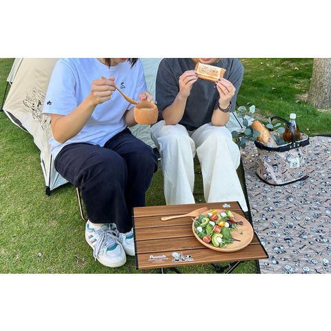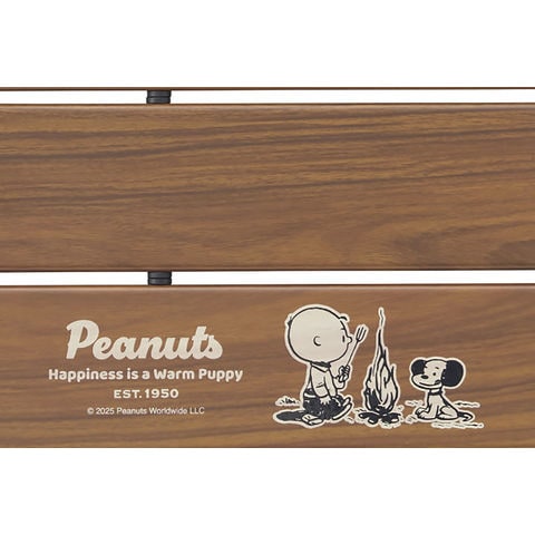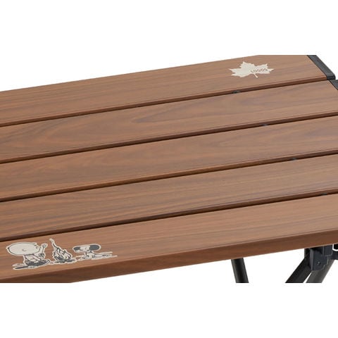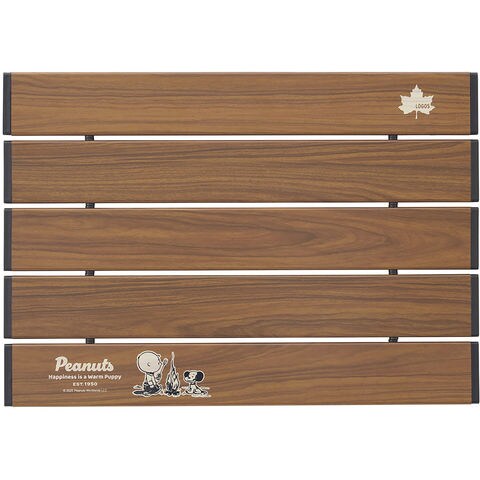 特長:軽量で持ち運びにも便利なコンパクトテーブル、コミック[PEANUTS]誕生75周年オリジナルモデル、アウトドアの世界観にマッチするデザイン、天板は水や汚れに強い木目調のアルミ天板、トレックチェアとの組み合わせもオススメ!、収納バッグ付き