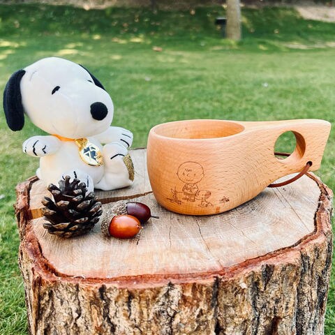 特徴:やさしい温もりの 200ML 木製マグカップ.コミック[ PEANUTS ]誕生 75 周年オリジナルモデル.アウトドアの世界観にマッチするデザイン.持ち運びにもおすすめ.ループ付きで吊り干しや吊り保管が可能. 1 つとして同じ色合いのないオンリーワン.