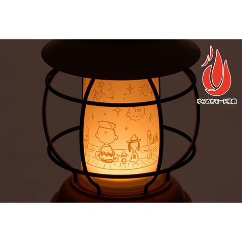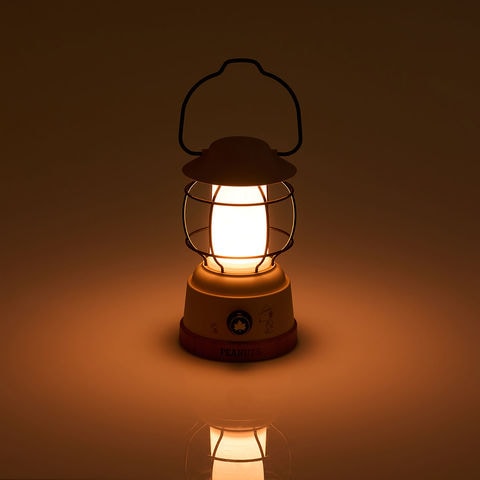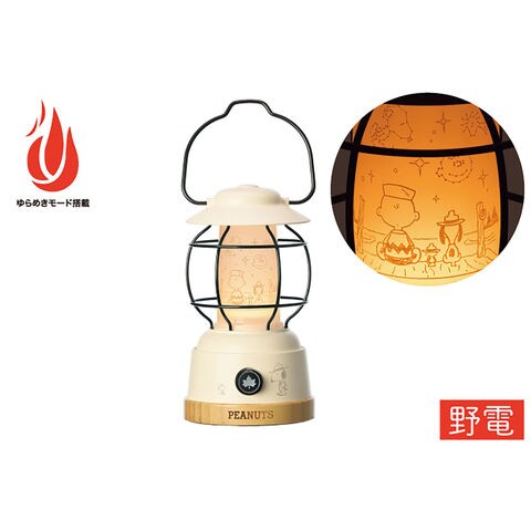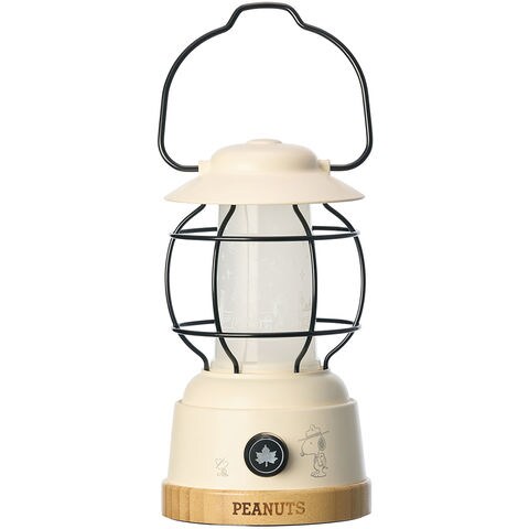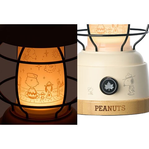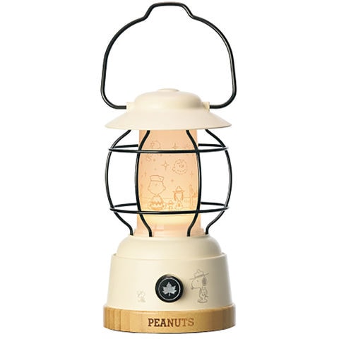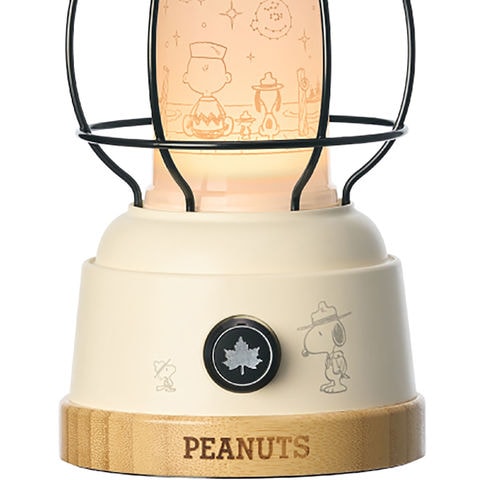 電池不要&スマホ充電可能!竹素材を使ったクラシカルなランタン.ロウソクのようにやわらかく揺らめく灯りを楽しめる LED ランタン.炎のゆらめきをイメージした[ゆらめきモード]を搭載し、灯りをともすとライトに、ピーナッツの仲間たちが夜空を見上げる後ろ姿が浮かび上がります.しっかりと照らしたい時は、灯りがゆらめかない通常モードにもでき、シーンによって切り替え可能です.あたたかな暖色の光は無段階調光に対応しており、読書やリラックスタイム、アウトドアなどシーンに合わせて心地よい明るさを演出. USB 蓄電式 で、スマートフォンなら約 1 台分充電できます.[ CAMP WITH SNOOPY ]は、スヌーピーやウッドストックたちが自然の中で冒険し、アウト・