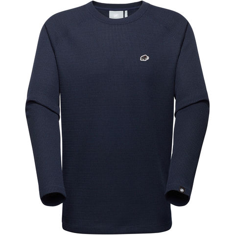 毎日のコーデに取り入れたい、柔らかいワッフルニット素材を使ったゆったりフィットのクルーネック長袖トップス.抜群の速乾性で体をドライに保つので、肌に直接触れるベースレイヤーとしても重宝します.高い伸縮性がアクティブな動きをサポート.胸に MAMMUT のパッチをあしらった、機能的なカジュアルウェアです.