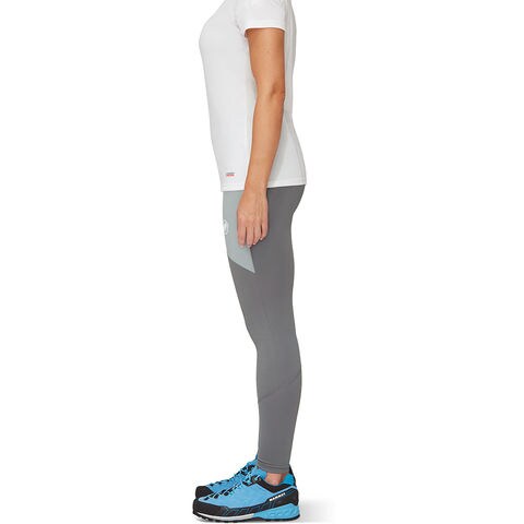 仕様:内側のドローコードでウェストバンドの幅を調節可能、クライミングハーネス対応のフロントポケット2つ.斜めの隠しジッパーでフェミニンな印象、フロントポケット周りに配置した軽量で伸縮性に優れたソフトシェルのダブル素材、さらに弾力性を与えるフラットロックシーム、右側カーフにマムートロゴ