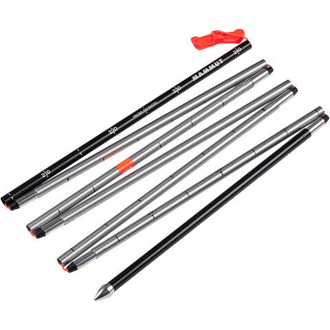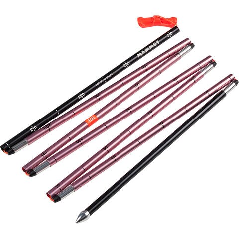 早業で組み立て可能、使いやすくコンパクトに収納可能: Probe 240 Shortは、最大の難関を迎えた時に重要なシンプル設計の良さを発揮します.マムートのプローブが目指したのはただ1つ.それは、超最新式のディティールこだわった設計です.Probe 240 Shortには耐久性のあるアルミニウムを使用することで、安定性が高く軽量な構造を実現しました.手袋をしたままで使いやすい、強度の高い伸縮式ロックシステム採用、エルゴノミックハンドル操作でプローブを素早く確実にがっちり固定、さらには最新型の積雪深度測定ガイドも備わり、常に正確な情報を入手することができます.