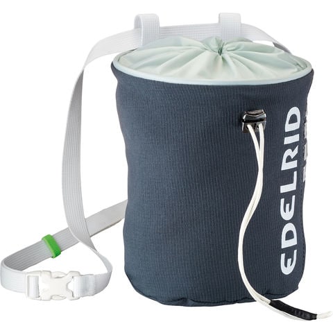 ハーネス[エース]を模したデザインの腰付け型チョークバッグ.ドローコードクロージャータイプ.シンプルで軽量でありボディが柔らかくパッキングしやすい. 2 箇所のブラシホルダー付き.