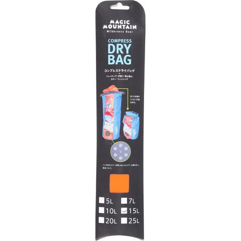 マジックマウンテン MAGIC MOUNTAIN コンプレスドライバッグ15L 丸底型 防水バッグ 防水ケース 圧縮袋 圧縮バッグ コンプレッション 水遊び 海 川 ビーチ プール キャンプ フィッシング 登山 MMCPDB15L グレー