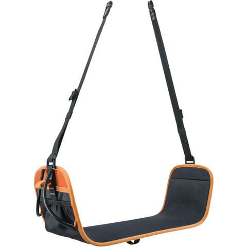 幅広なので腰回りに工具を多数装着した状態でも座り易い.ストラップの長さ調節可能.サイドポケット付き.