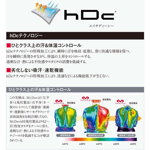 hDc機能搭載(劣化しない吸汗・速乾機能)