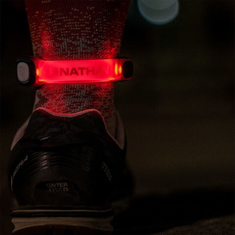 女性や細身のランナーにもフィット.腕や足首に装着して高い視認性を確保するバンドタイプのLEDライト.LEDカラーをボタンにより赤・緑・青の3カラーに変更可能.