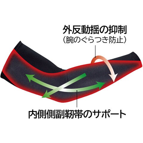 マジコスポルト・ラジアルパワースリーブは抜群の軽さとストレッチ性、フィット性を備え、腕全体の適圧サポート.投球時の捻転によるブレを制御し動きを安定化.内側側副靱帯を守るテーピング構造で腕・ひじにかかる負担の軽減・保護から、パフォーマンスアップまでをサポートします.