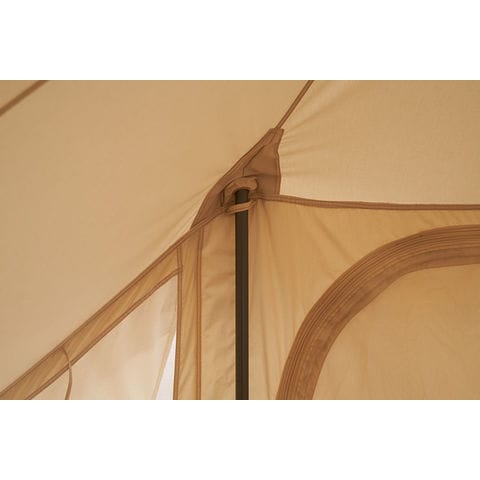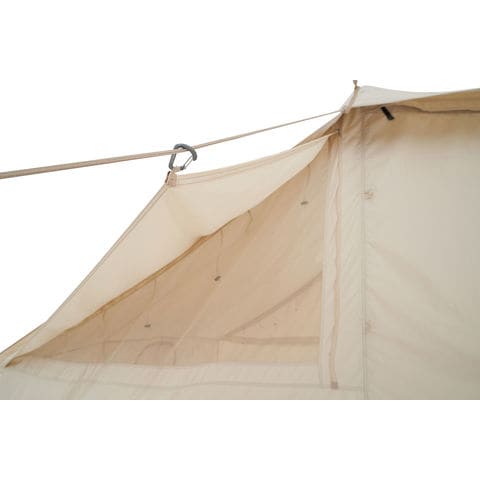 13.2平方メートルのオープンエアコットンテント.ウトガルドスカイは、テントの中で本物の家に住むような感覚を味わえる素晴らしいテントです.広々としたスペースは6人が寝られる広さで、家族や友人とのキャンプに最適です.四角い形状はグランピングの装飾に最適で、区画サイトでも設定営がしやすいです.さらに、通気性の良いテクニカルコットンは通気性に優れており、夏の暑い日でも涼しく快適な温度を楽しめます.テントの前後にドアと大きな窓があり、換気、視界、想定の全てが確保されています.すべてのドアと窓にはメッシュが付いているので、虫の侵入を防ぎます.※フロアシート(ジップインフロア)は別売です