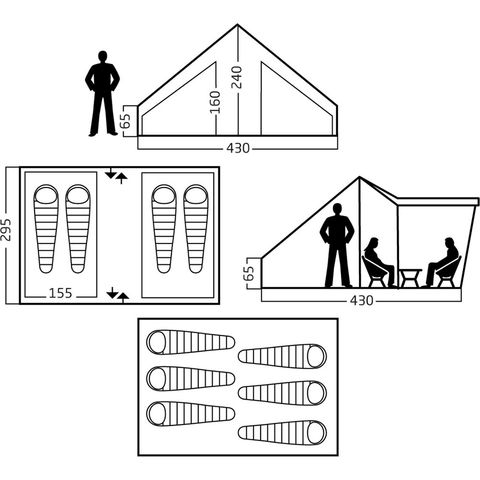 サイズ:Flysheet/長さ430cm、幅295cm、高さ240cm、パック仕様/直径31cm、長さ103cm、パックの種類/Pack sack with carry handles