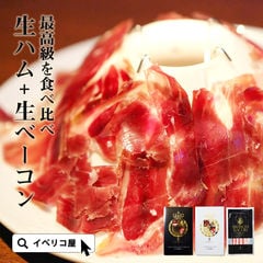 ■ 内容:イベリコ豚生ハム(4年熟成 レアルベジョータ / 30ヶ月 ベジョータ) / セラーノ生ハム(18ヶ月熟成)/ イベリコ豚 生ベーコン / 黒毛和牛生ハム(霜降りサーロイン)/ 国産鴨生ハム(モモ肉)
