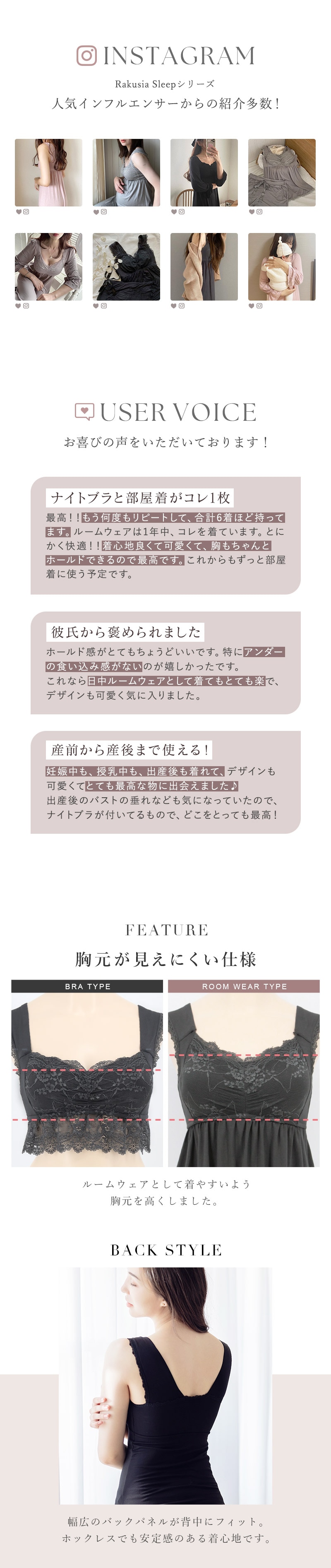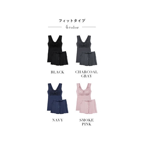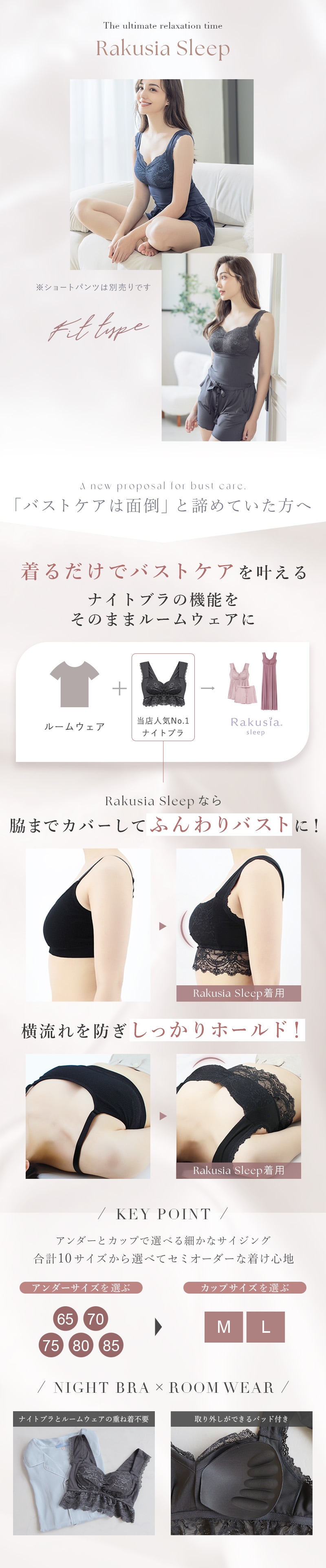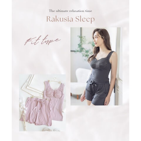 《ラクシアスリーブ》ナイトブラキャミセットアップ フィットタイプ ノンワイヤー 育乳 授乳 ルームウェア 75M チャコールグレー