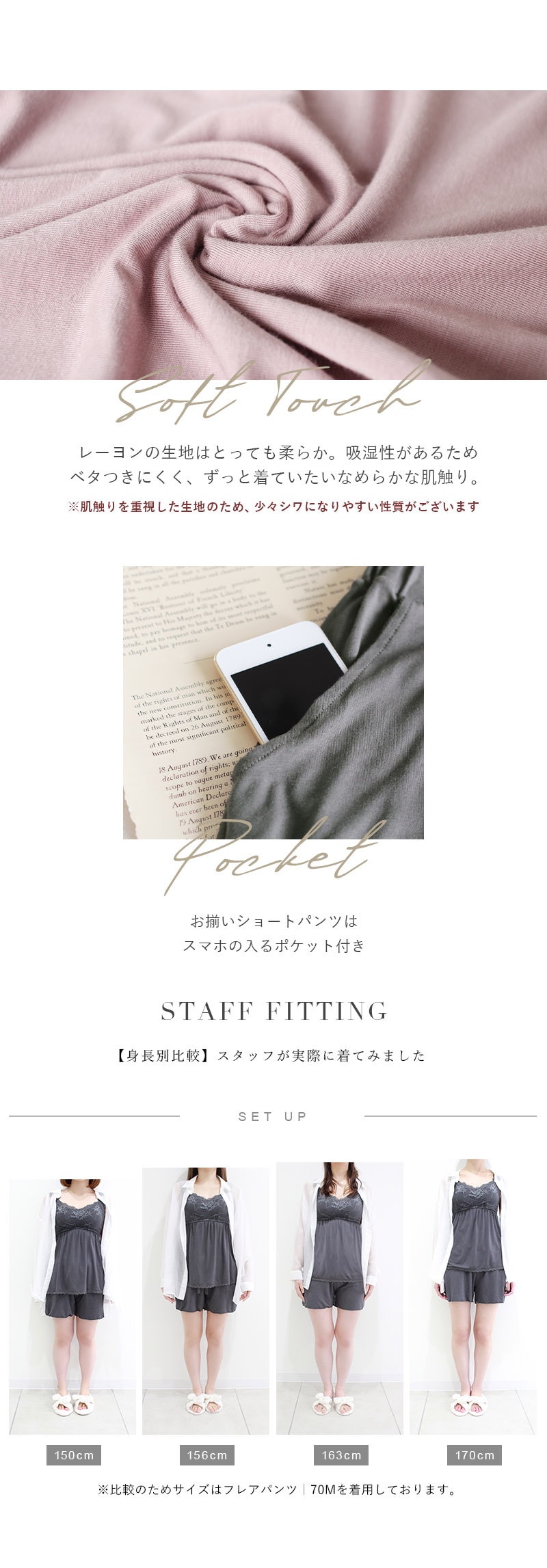 | 《ナイトブラキャミ》 【65M】アンダー:28cm、裾幅:40cm、総丈:52.5cm 【65L】アンダー:28cm、裾幅:40cm、総丈:53.5ccm 【70M】アンダー:30cm、裾幅:40cm、総丈:54cm 【70L】アンダー:30cm、裾幅:40cm、総丈:55cm 【75M】アンダー:32cm、裾幅:42cm、総丈:55.5cm 【75L】アンダー:32cm、裾幅:42cm、総丈:56.5cm 【80M】アンダー:34cm、裾幅:42cm、総丈:57.5cm 【80L】アンダー:34cm、裾幅:42cm、総丈:58.5cm 【85M】アンダー:36cm、裾幅:44cm、総丈:58cm 【85L】アンダー:36cm、裾幅:44cm、総丈:59cm 《フレアパンツ》 【M】ウエスト:35cm、総丈:36.5cm、股下:9cm、裾幅:30cm 【L】ウエスト:37cm、総丈:37.5cm、股下:9cm、裾幅:30cm 【LL】ウエスト:39cm、総丈:38.5cm、股下:9cm、裾幅:32cm ※サイズはスタッフが平置きで採寸した実寸値となります。多少の誤差が生じる場合がございますので予めご了承ください。 |