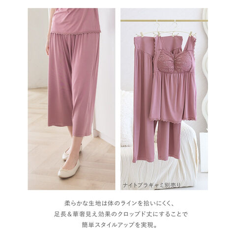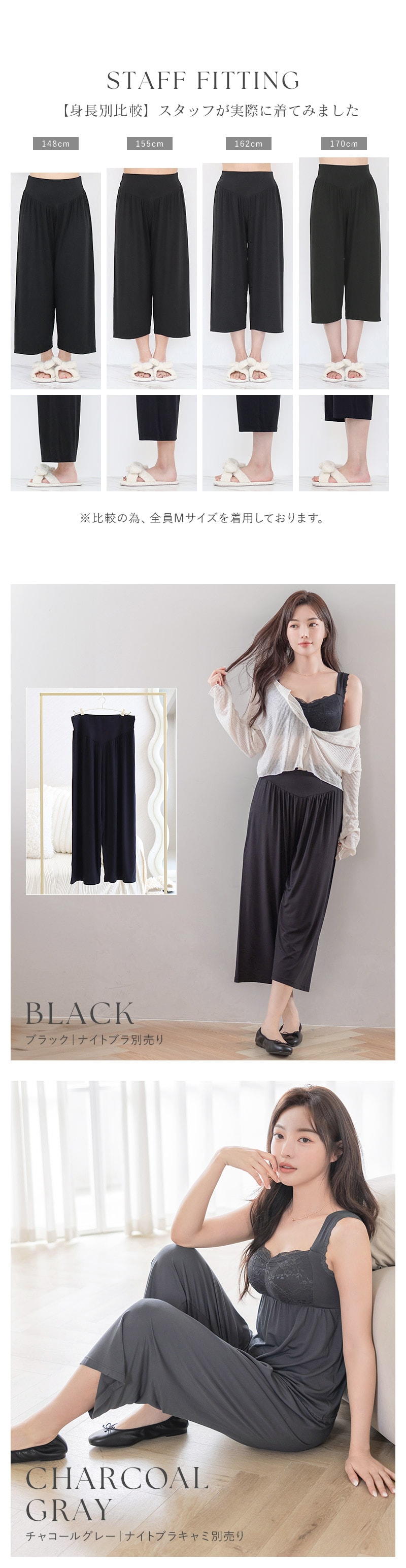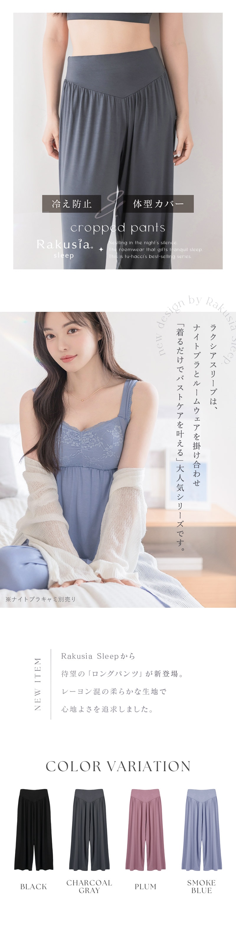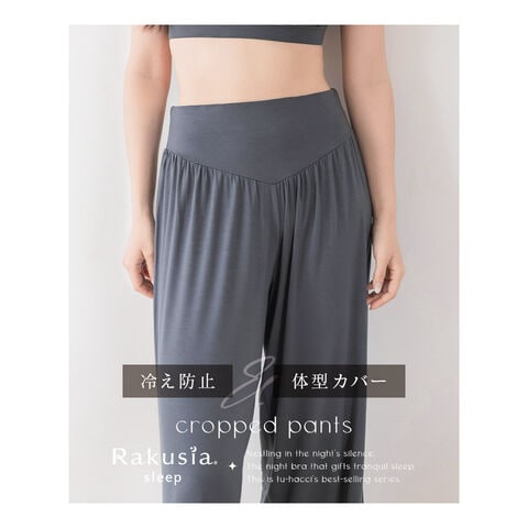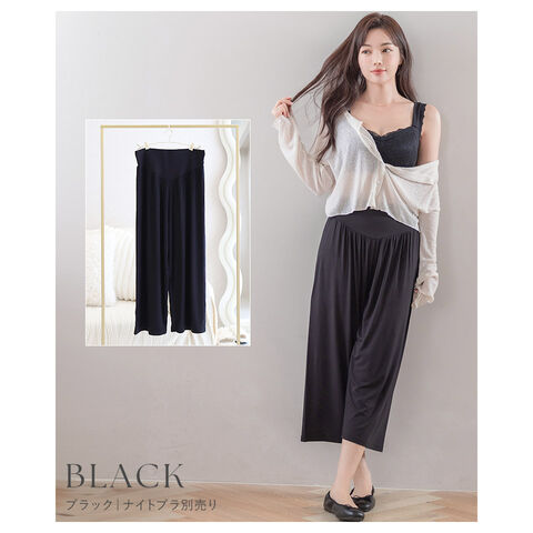 《ラクシアスリープ》クロップドパンツ ルームウェア 部屋着 産前産後 マタニティ 腹巻き付き 冷え防止 ラクシアおそろい かわいい 【tu-hacci】 8812sl L ブラック