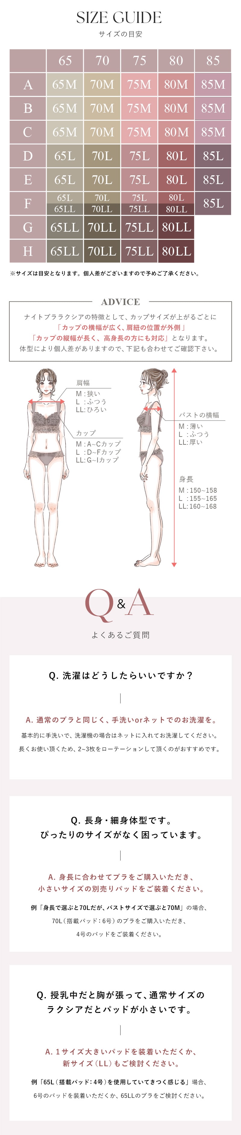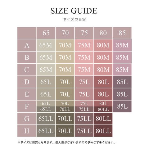 65M 65L 65LL 70M 70L 70LL 75M 75L 75LL 80M 80L 80LL 85M 85L 《対応サイズ目安》 65M:A65 B65 C65 65L:D65 E65 F65 65LL:F65 G65 H65 70M:A70 B70 C70 70L:D70 E70 F70 70LL:F70 G70 H70 75M:A75 B75 C75 75L:D75 E75 F75 75LL:F75 G75 H75 80M:A80 B80 C80 80L:D80 E80 F80 80LL:F80 G80 H80 85M:A85 B85 C85 85L:D85 E85 F85 ※対応サイズは目安となります。 詳細は[サイズの目安]の画像をご確認ください。 |