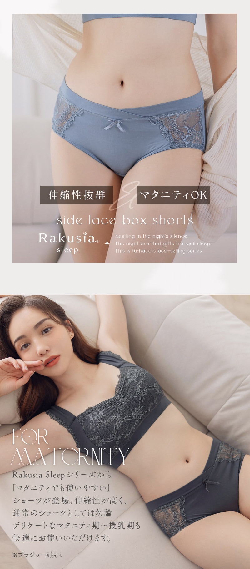 《ラクシアお揃いショーツ》サイドレースボックスショーツ マタニティ ウエストゴム不使用 なめらか フルバック【ショーツ単品】【tu-hacci】 LL ブラック
