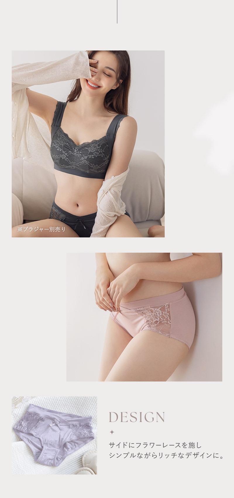 サイドに華やかなフラワーレースを施したフルバックショーツ。 贅沢な素材と繊細なデザインが調和し、純粋な美しさを演出。 ウエストゴム不使用で食い込みにくく優しいフィット感。 ~マタニティ期にも~ ウエスト部分のV字カーブがお腹を優しくサポート。お腹が大きくなっても苦しくなりにくい設計です◎ ■コーディネート可能 「ラクシアスリープシリーズ」をお持ちの場合、その日の気分や体調に合わせてコーディネート可能です。 |