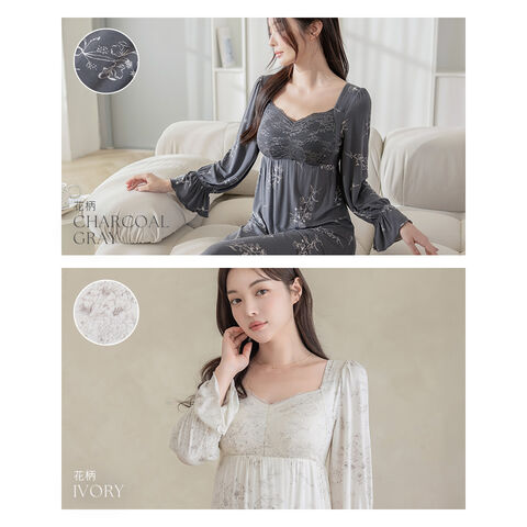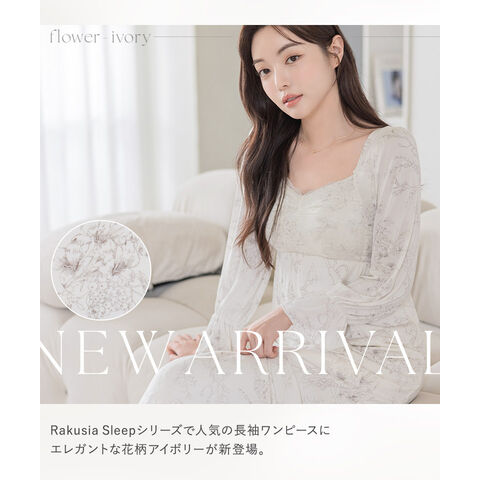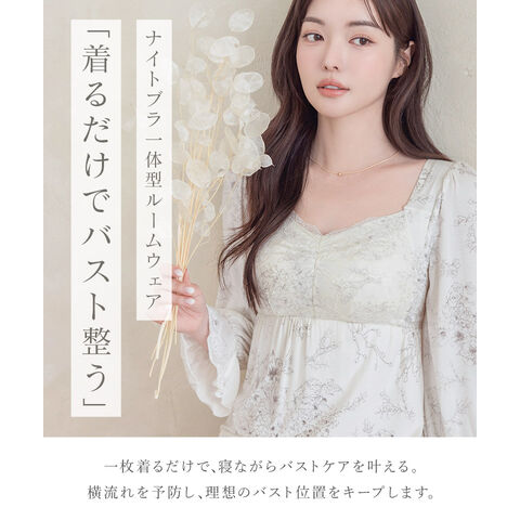 《ラクシアスリープ》ナイトブラワンピース 長袖マキシ丈 ナイトブラ ルームウェア レディース ワンピース ナイトブラ一体型 カップ付き ノンワイヤー マタニティ 授乳 育乳 ルームウェア 部屋着【tu-hacci】 80L 花柄/アイボリー