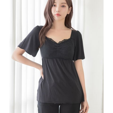 《ラクシアスリープ》ナイトブラキャミ半袖フレア【キャミソール単品】【tu-hacci】 65L ブラック