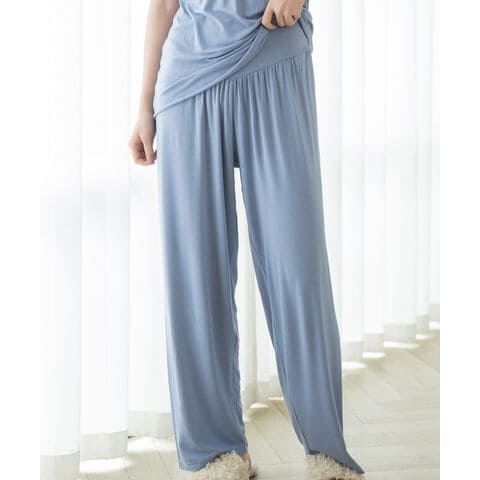 《ラクシアスリープ》ナイトブラキャミお揃いロングパンツ【ロングパンツ単品】【tu-hacci】 LL スモークブルー