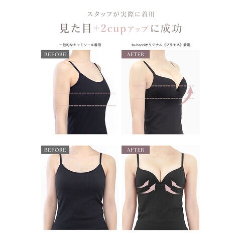 tu-hacciの人気No.1インナー。盛りブラ一体型キャミで、下着+インナーの重ね着のわずらわしさから解放。