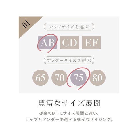 ・アンダーとカップサイズから、自分に合ったサイズが選べる