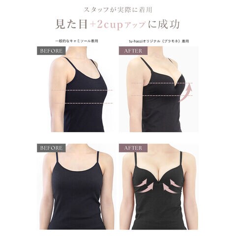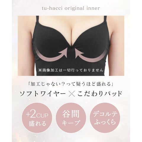 tu-hacciの人気No.1インナー。盛りブラ一体型キャミで、下着+インナーの重ね着のわずらわしさから解放。