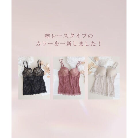 《2cup盛りtype》 ワイヤー&カップ付き総レースキャミソール 盛り機能つき【ブラトップ】【tu-hacci】 EF80 グレージュ