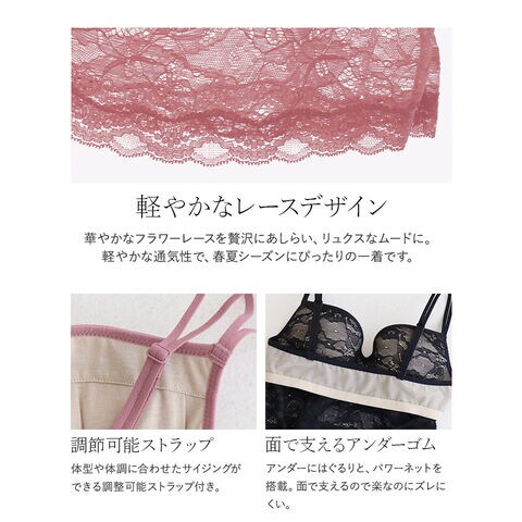 カップ色は肌なじみのよいベージュを採用し、全体を通して美しい透け感を楽しめます。