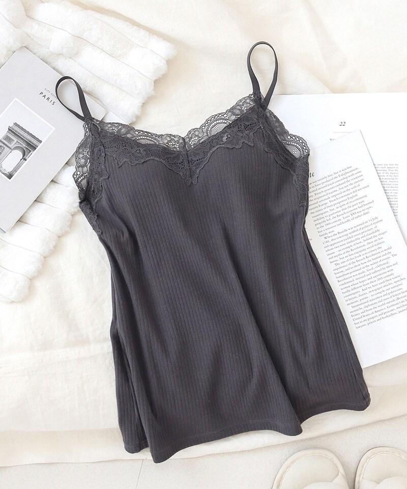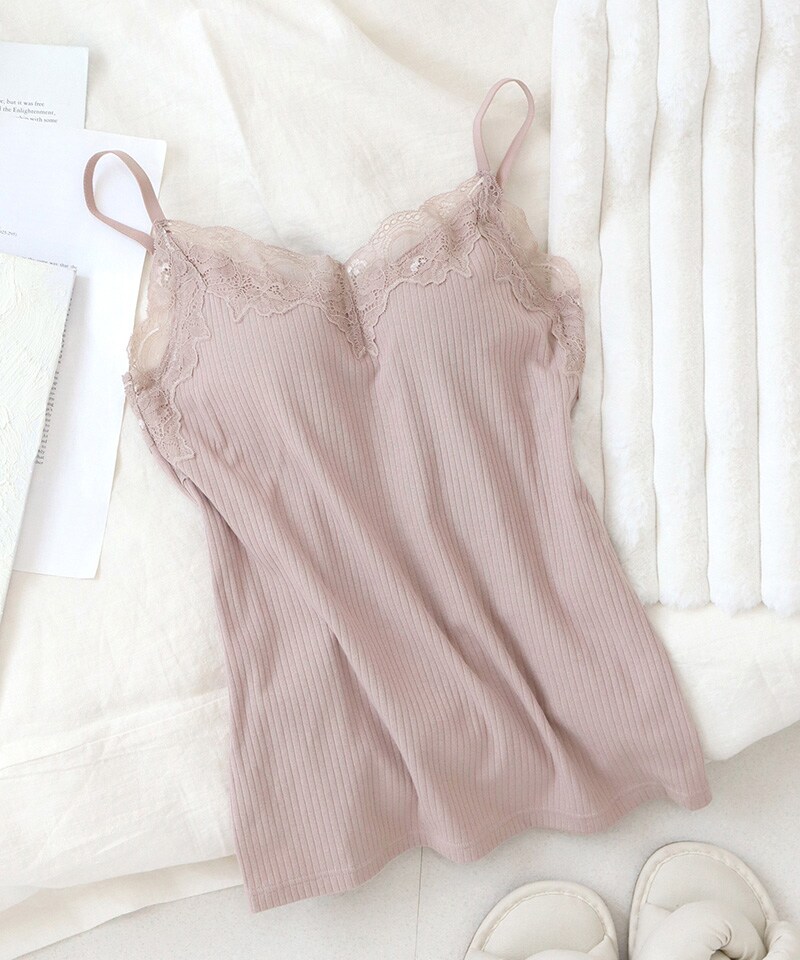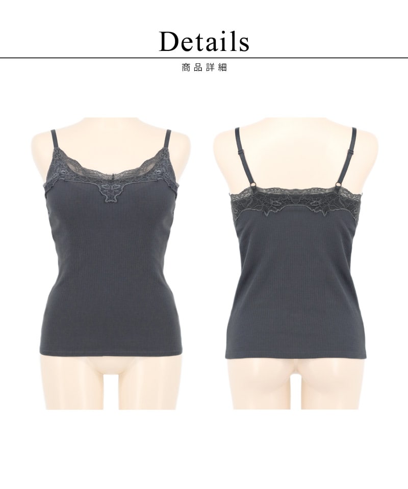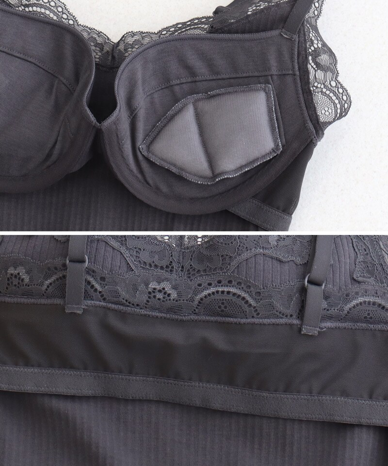《2cup盛りtype》 カップ付き 盛れる ルームウェアワイヤー入りリブレースキャミ【tu-hacci】 CD70 ブラック